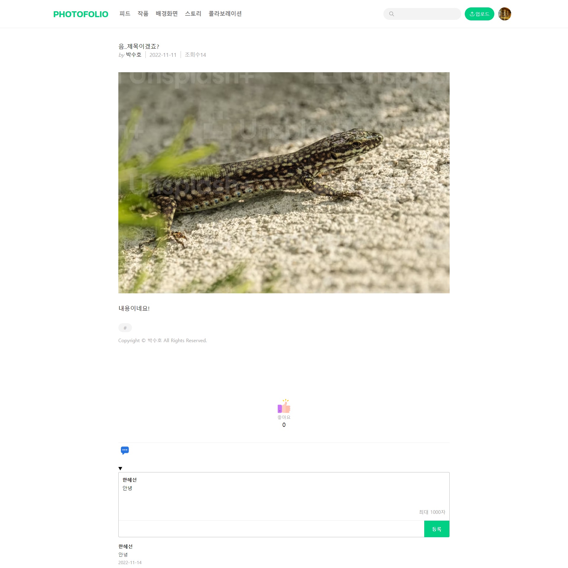 사진 공유 플랫폼으로, 누구든 사진작가가 되어 자신의 작품을 업로드하여 소통할 수 있다.
